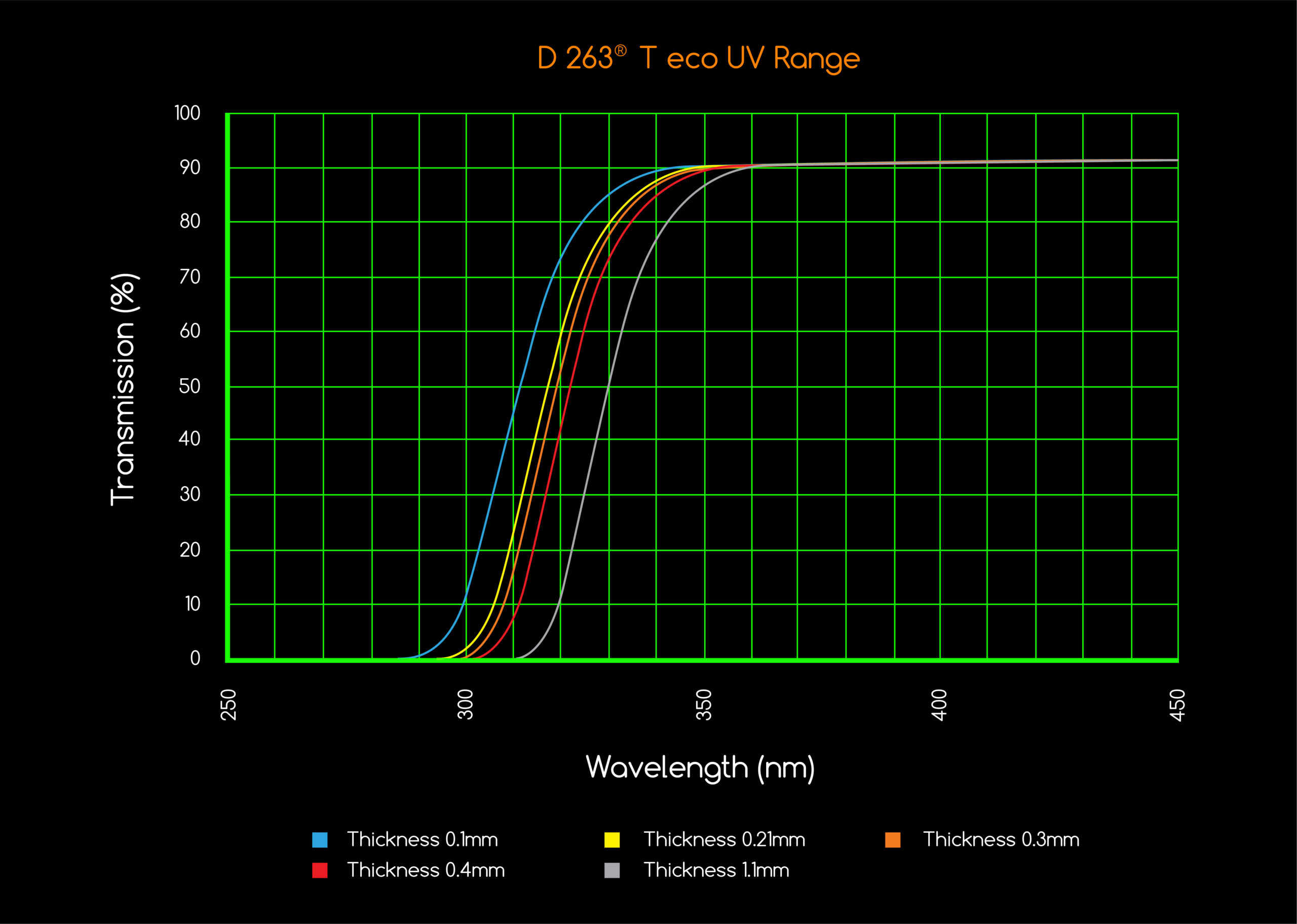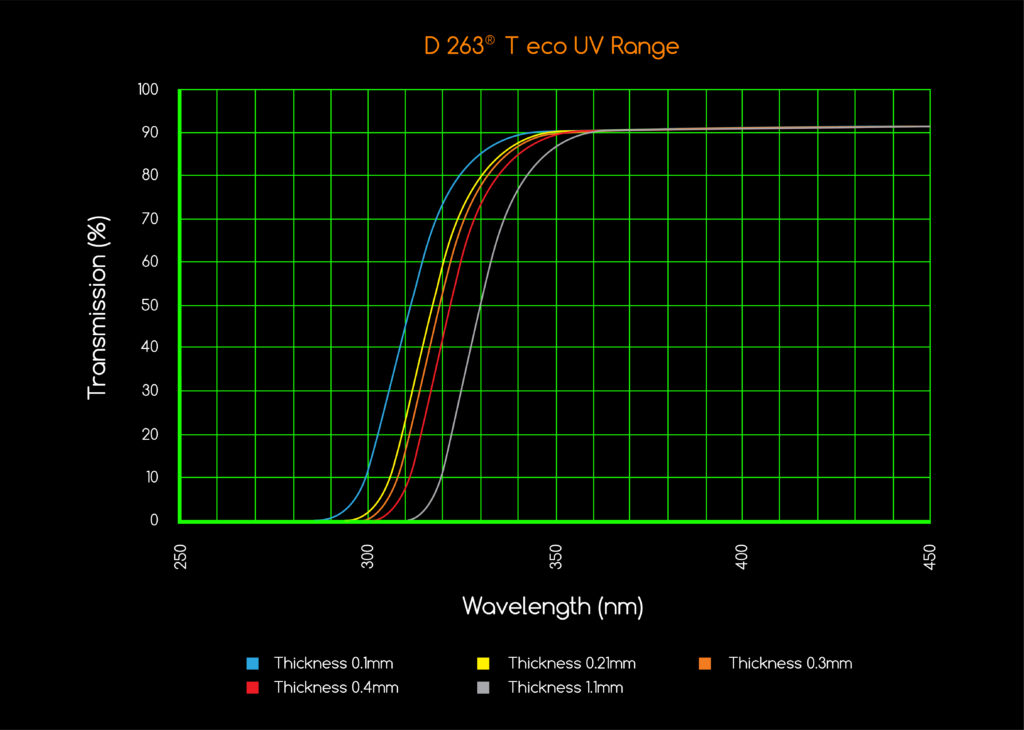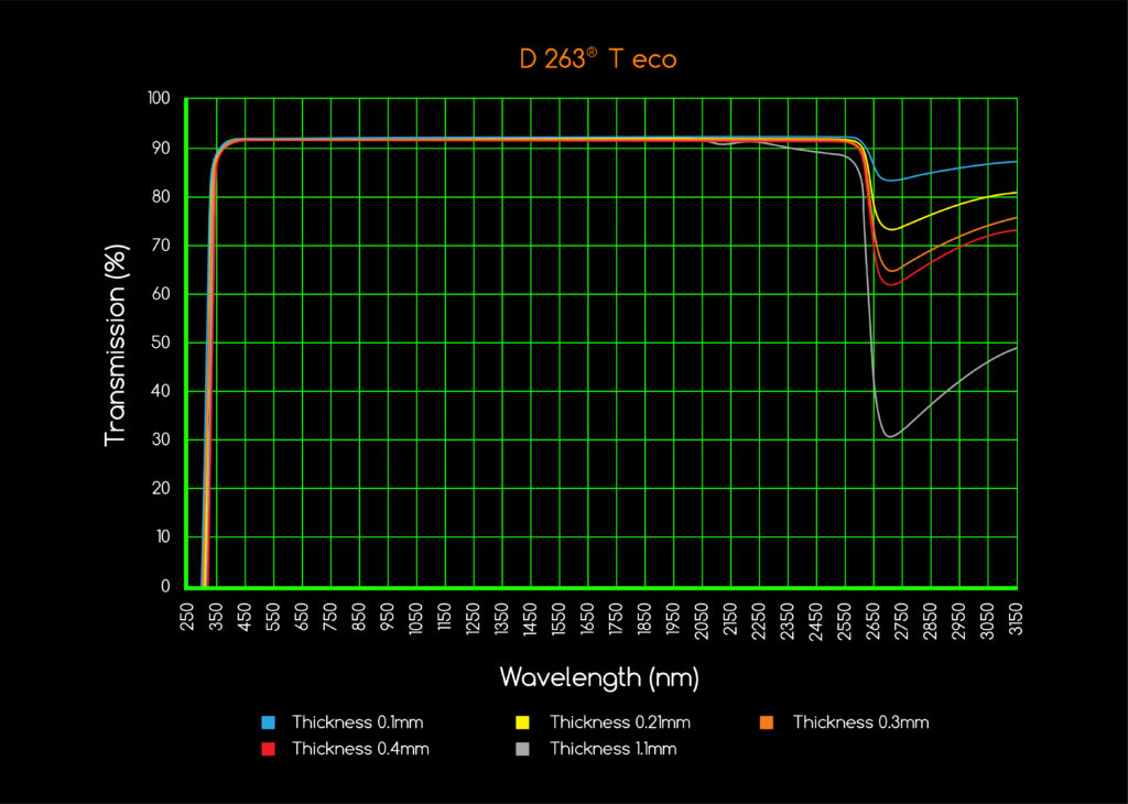 D 263® T eco offers a wide thickness range allied to extremely high thickness tolerances, low TTV (total thickness variation) making it a versatile product for adaptation to future product miniaturization.