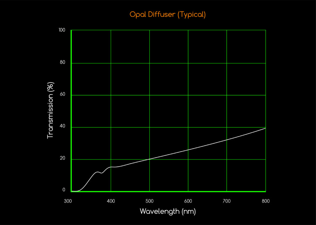 Heli Optical Systems offers a solid white glass Opal diffuser material, with a porcelain-like appearance. The diffusing properties of the material is inherent, offering a near perfect or Lambertian “matte” surface which remains consistent regardless of angle of view. Excellent for applications requiring very even diffusion, such as backlighting.